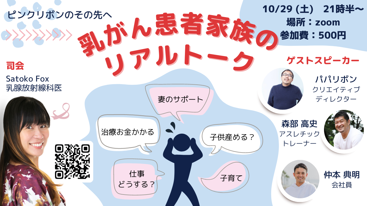 「病院では行き届かないサポートを新しいカタチで」をモットーに、オンラインで活動中。乳がんサバイバーさんとお話する中、パートナーシップの大事さについて考えることが多く、今回この会を企画。